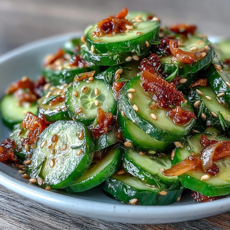 Save This Asian Cucumber Salad with Sesame and Rice Vinegar is a celebration of simplicity and freshness. Crisp English cucumbers are transformed with a tangy dressing that balances the nutty richness of toasted sesame oil, the bright acidity of rice vinegar, and the savory depth of soy sauce. Enhanced with aromatic garlic and ginger, this salad delivers refreshing crunch in every bite. Whether you're looking for a light appetizer, a vibrant side dish, or a cooling complement to grilled meats, this salad brings authentic Asian-inspired flavors to your table in just 10 minutes.