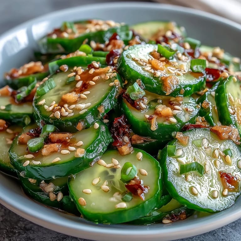 For the crispest results, use a mandoline or sharp knife to slice cucumbers uniformly thin. The salting step is crucial—it prevents the salad from becoming watery and helps the cucumbers absorb the dressing more effectively. If you prefer a milder flavor, reduce the garlic or ginger slightly. Toasting your own sesame seeds in a dry skillet for 2-3 minutes enhances their nutty aroma significantly. Make sure to dissolve the sugar completely in the dressing to avoid grittiness. While this salad is best enjoyed fresh, it can be refrigerated for up to 2 hours before serving.