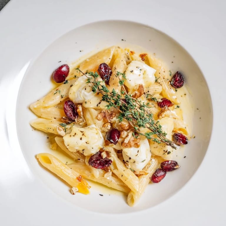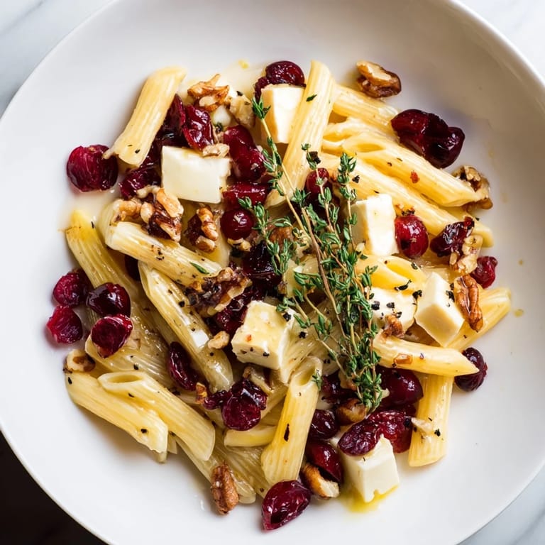 This baked Brie and cranberry pasta is a perfect blend of rich and tart ideal for any occasion.