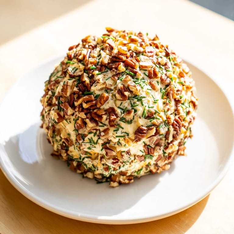 - Mix chopped pecans and chives (if using) on a plate. Roll chilled cheese ball in nut mixture to coat evenly.