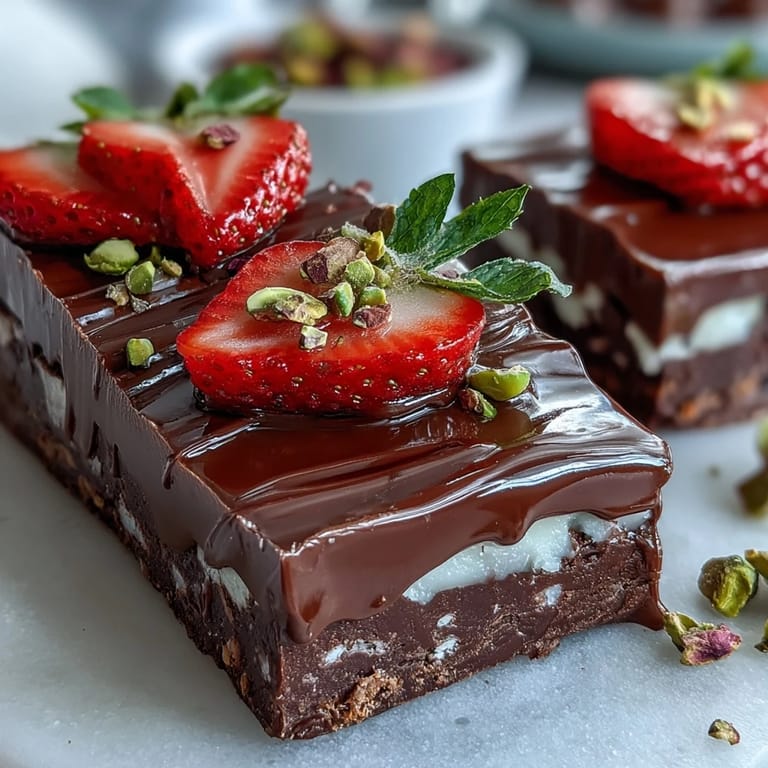Save Discover the allure of Dubai's viral dessert sensation with this Chocolate Strawberry Bark. Combining the richness of dark chocolate with creamy white chocolate, this no-bake treat is adorned with juicy strawberries, crunchy pistachios, and delicate edible rose petals. Perfectly balanced and visually stunning, it's an easy way to impress your guests or indulge your sweet tooth with a Middle Eastern-inspired fusion dessert that requires minimal effort.