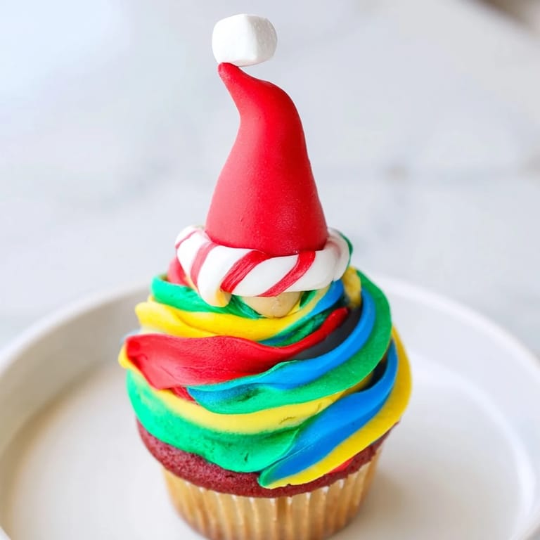 From baking the tender cupcakes to crafting the intricate elf hats, this recipe offers the perfect way to immerse yourself in holiday cheer and creativity. The vibrant buttercream frosting tinted with gel colors pairs beautifully with the sweet, hand-decorated fondant hats. Assembling the cupcakes on a tiered stand completes the magical tower effect that will be the star of any dessert table.