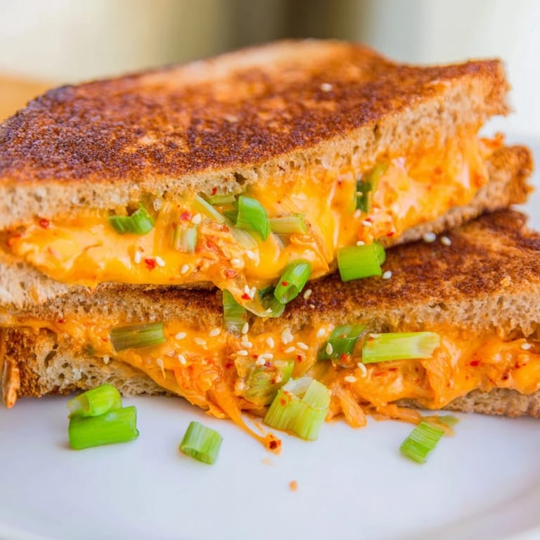 Save A bold and savory grilled cheese sandwich featuring tangy kimchi and sharp cheddar pan-toasted to golden perfection a fusion twist on a classic comfort food