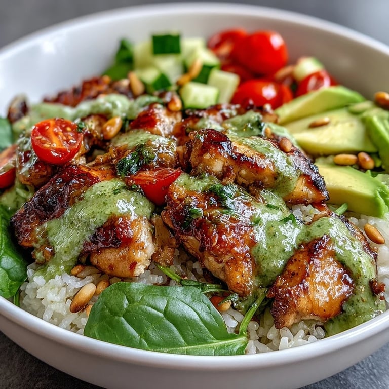 I've swapped the rice for quinoa when I wanted more protein, and for cauliflower rice when I was in the mood for something lighter and faster. My sister uses shrimp instead of chicken and it cooks in half the time, which is perfect for her busy schedule. If you don't have pesto, a simple mix of olive oil, lemon juice, and fresh herbs works in a pinch, though it won't have quite the same punch. You can also toss in roasted red peppers, artichoke hearts, or a handful of arugula to change things up without losing the spirit of the bowl.