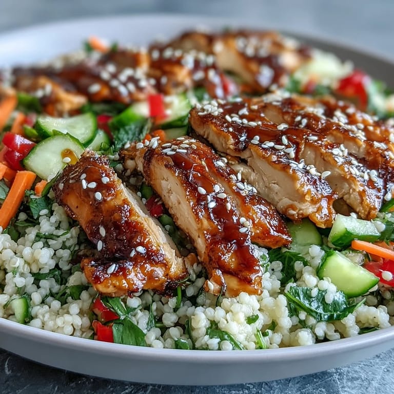 Save There's something about a bowl that feels instantly complete, like you've solved a puzzle without even trying. I discovered sesame-ginger chicken couscous bowls on a Tuesday when I had leftover pearl couscous and an urge to eat something that tasted like it came from a restaurant but didn't require leaving my kitchen. The combination of nutty sesame, warm ginger, and that tangy lime dressing transformed everything it touched, and suddenly I was eating like I'd planned this meal for days. Now I make these whenever I need something that feels both indulgent and honest.