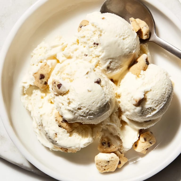 Save A creamy, protein-packed ice cream featuring whipped cottage cheese and bursts of edible chocolate chip cookie dough, perfect for a guilt-free frozen treat.