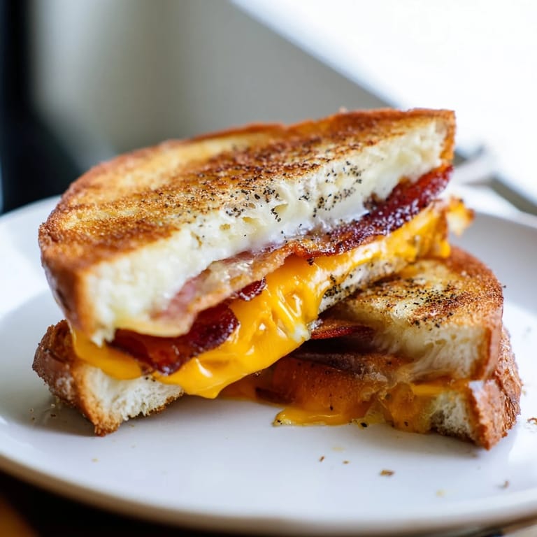 Save There's something about the smell of bacon hitting a hot skillet that makes everything else stop. One rainy afternoon, I was standing in my kitchen with leftovers and not much motivation to cook, when I remembered a grilled cheese my grandmother used to make—nothing fancy, just bread, butter, and cheese. I decided to throw bacon into the mix, and the moment that first sandwich came off the pan with its golden crust shattering under my teeth, I understood why she made it so often. It wasn't just food; it was comfort wrapped in crispness.
