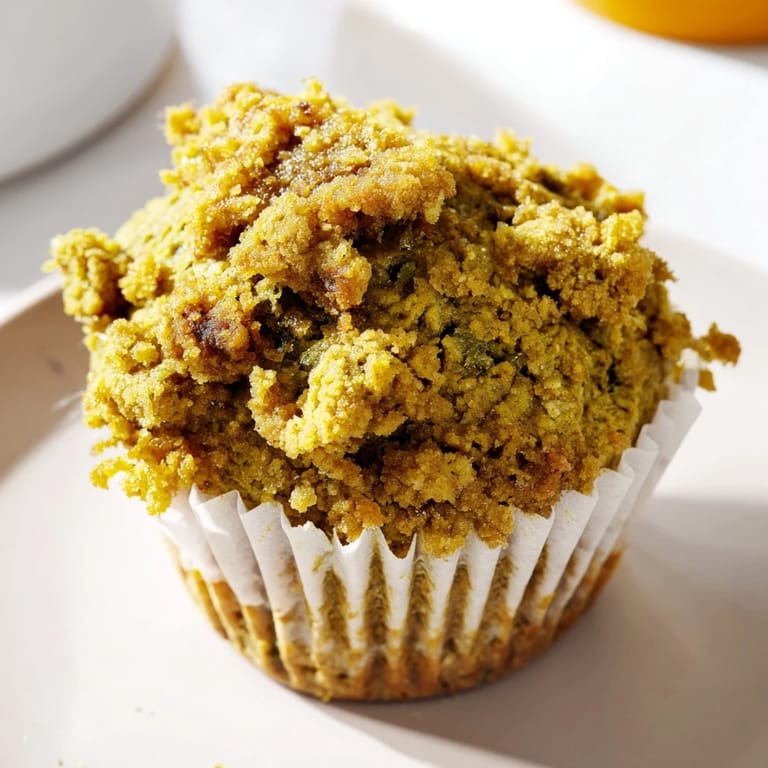 Save Moist, tender muffins infused with earthy matcha and sweet pumpkin, finished with a crisp, buttery streusel topping—a delightful treat for breakfast or snack.
