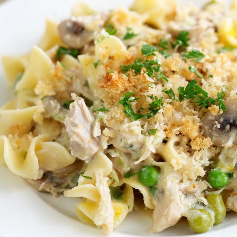 Save I was halfway through a Tuesday night when my sister called asking what I was making for dinner, and I found myself describing a tuna noodle casserole my mom used to pull from the oven on nights when we needed something that tasted like comfort and didn't require much thinking. That childhood version was fine, sure, but somewhere between then and now I realized it could be so much better—creamier, fresher, with vegetables that actually tasted like themselves instead of disappearing into mush. This is that updated version, the one I've been making ever since I figured out that crispy panko top makes all the difference.